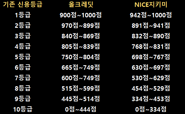 신용등급 점수표 신용점수 등급 및 조회 신용점수제